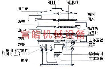 全不銹鋼旋振篩,由直立式電機作激振源,電機上、下兩端安裝有偏心重錘,將電機的旋轉運動轉變為水平、垂直、傾斜的三次元運動,再把這個運動傳遞給篩面。調節上、下兩端的相位角,可以改變物料在篩面上的運動軌跡。